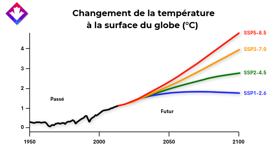 Des scénarios basés sur les SSP ont été utilisés dans le plus récent ensemble d’expériences de modélisation climatique, connu comme la sixième phase du Projet d’intercomparaison de modèles couplés, ou CMIP6. Les résultats de ces expériences ont formé une base pour l’évaluation des changements climatiques passés et futurs sous-tendant le sixième rapport d’évaluation du Groupe d’experts intergouvernemental sur l’évolution du climat (GIEC).