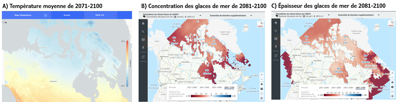 Cet article a été préparé par le Centre canadien des services climatiques d’ECCC en collaboration avec des fournisseurs de services climatiques régionaux (Ouranos, le Pacific Climate Impacts Consortium et CLIMAtlantic), des organisations du Nord (les gouvernements des Territoires du Nord-Ouest, du Nunavut et du Yukon, ainsi que l’Université du Yukon et l’Université Queen’s) et la Division de la recherche climatique d’ECCC.