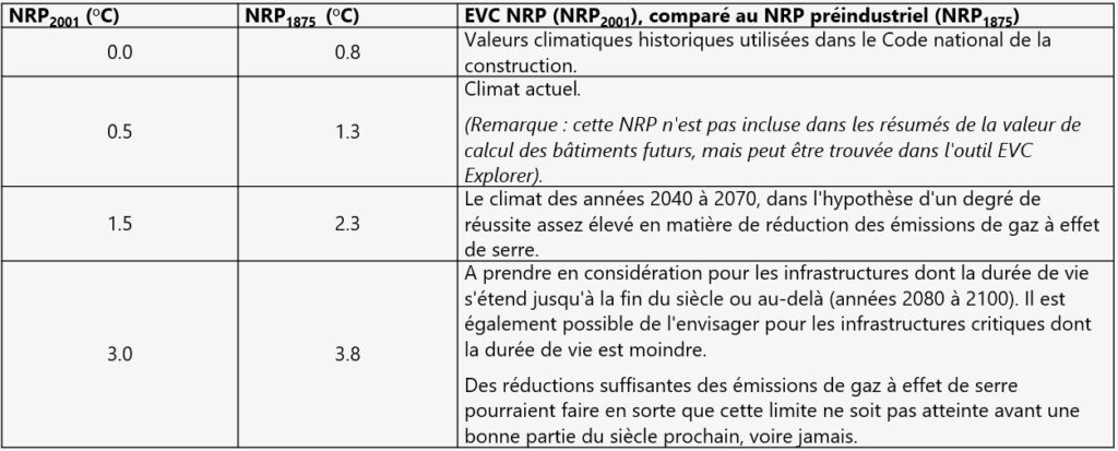 | NRP2001 :1,5°C / Milieu du siècle | 1.5 | 0.2 |