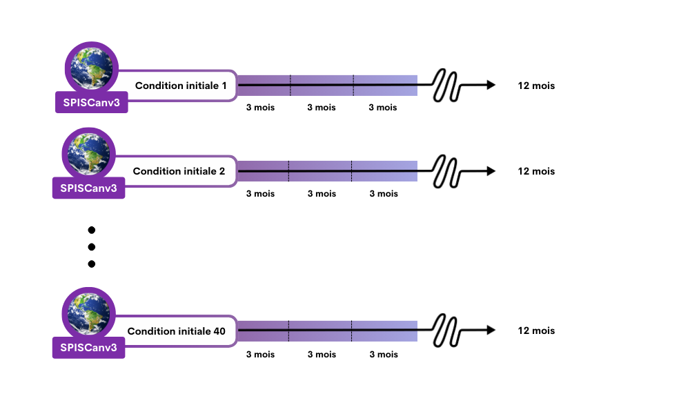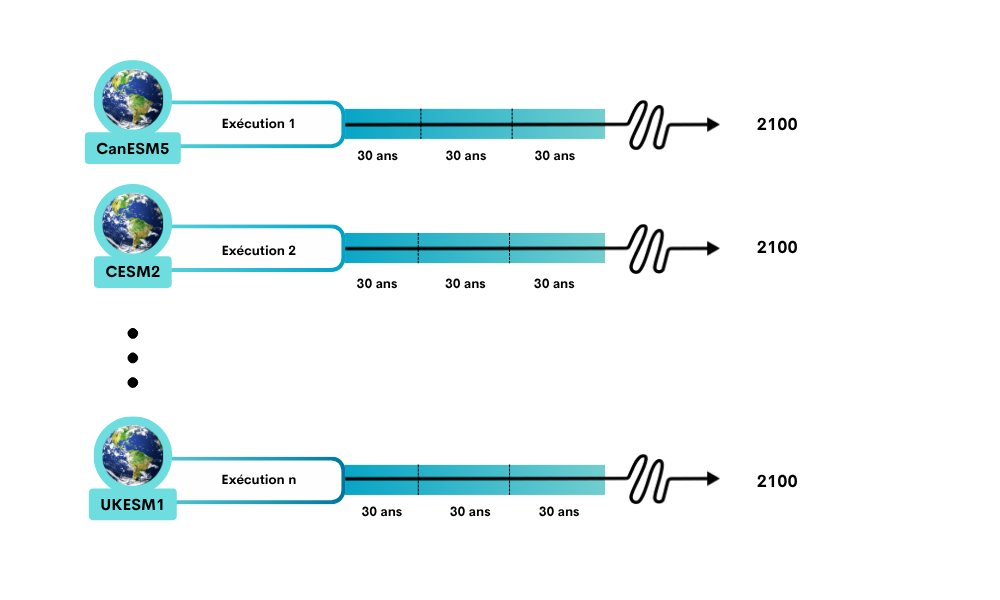 L’atmosphère, la terre, les océans et les activités humaines influencent tous le climat sur des échelles de temps allant de quelques jours à plusieurs siècles. Ces influences sont prises en compte dans les modèles climatiques et fournissent la prévisibilité nécessaire pour produire des prévisions saisonnières et des projections climatiques, comme le montre la figure 3. Différentes sources de prévisibilité influencent le climat plus fortement à différentes échelles de temps (par exemple, mois, saisons, décennies).